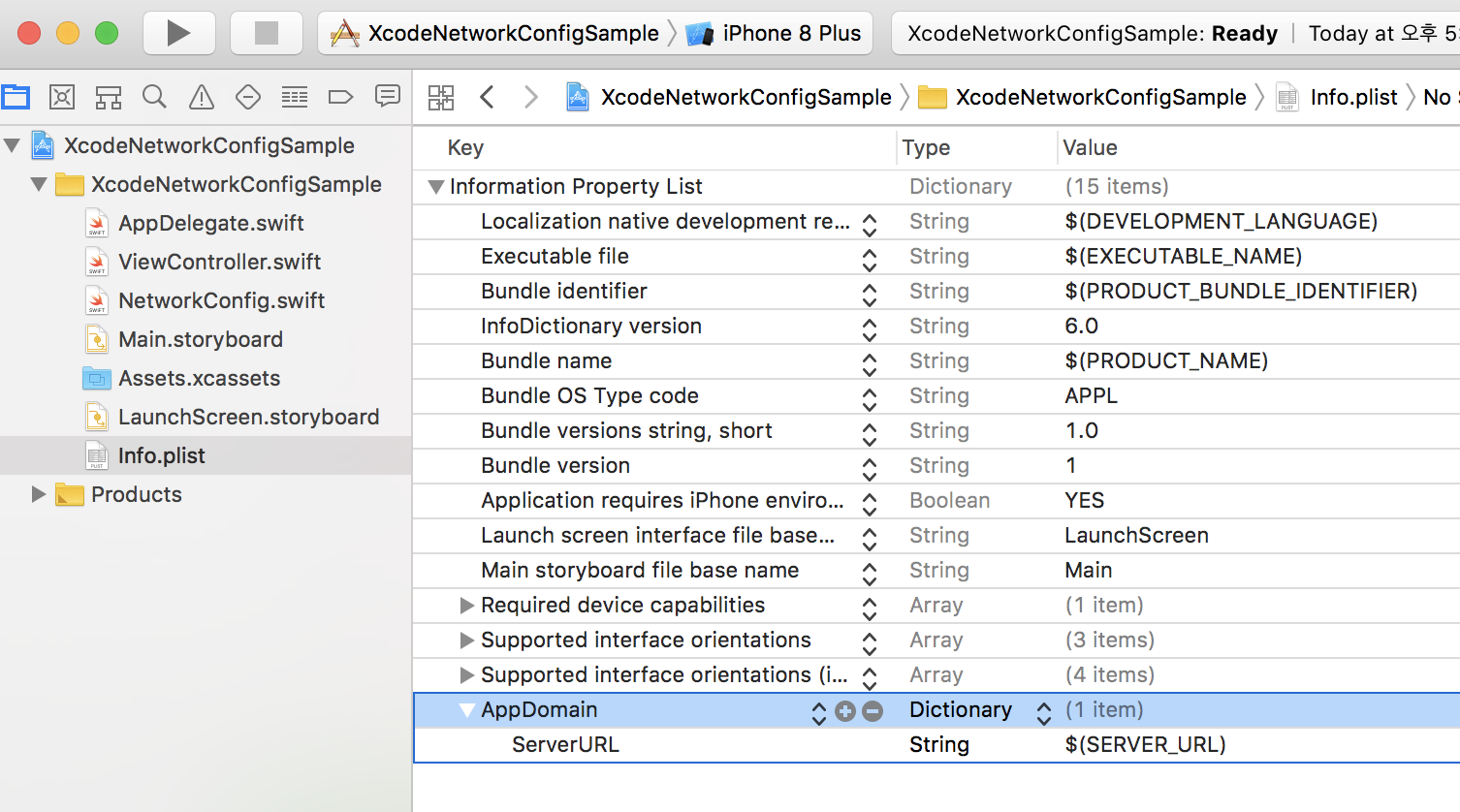 이제 *.swift 코드에서 각 환경별로 서버 설정 값을 불러올 수 있게 됐습니다.