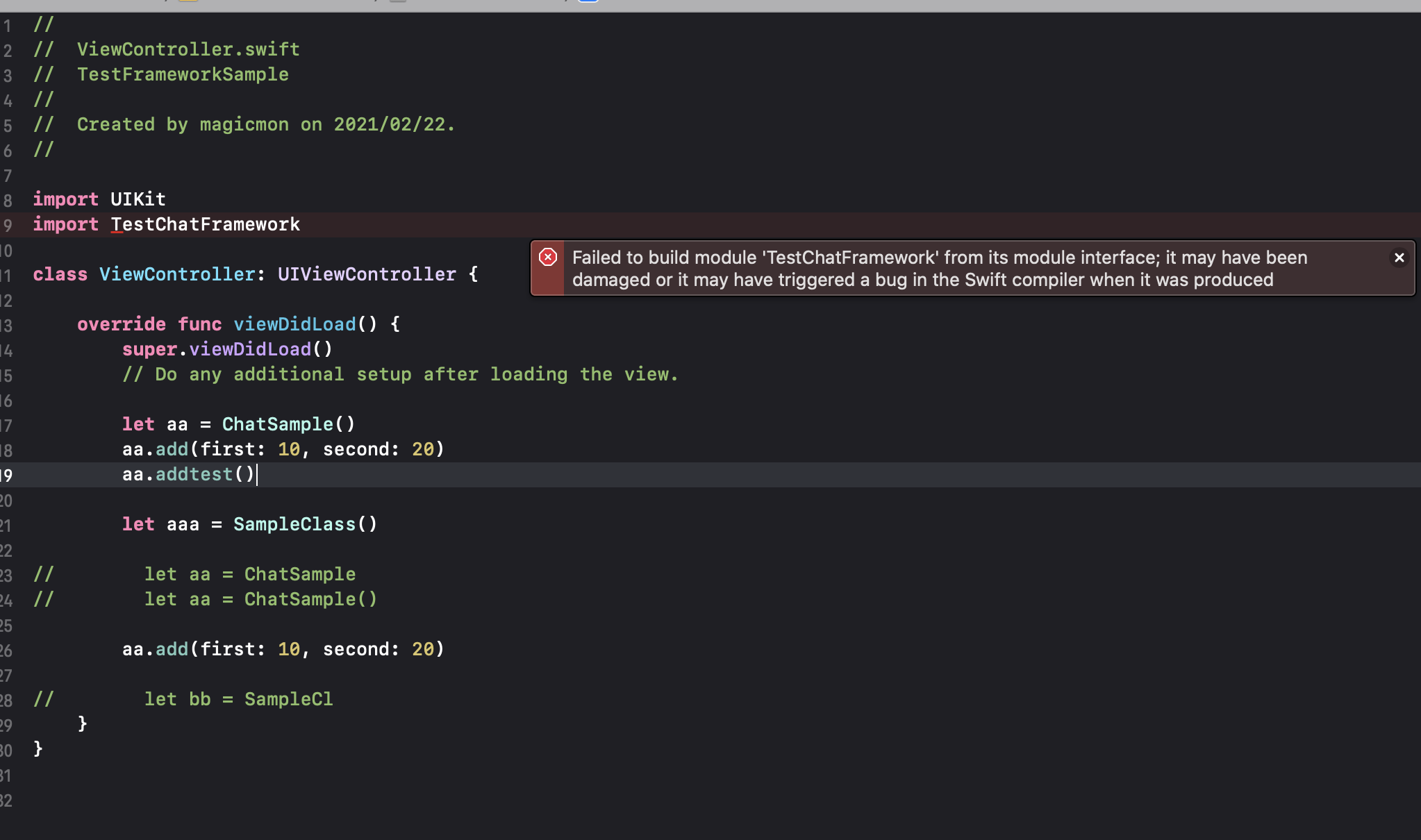 Failed to build module '<TestChatFramework>' from its module interface;